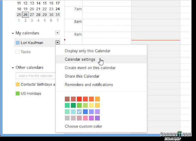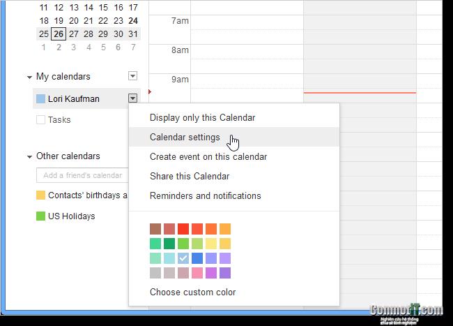 Trong trang lịch, bạn bấm vào mũi tên ở mục lịch của tôi (my calendar) và chọn cài đặt lịch (calendar settings).