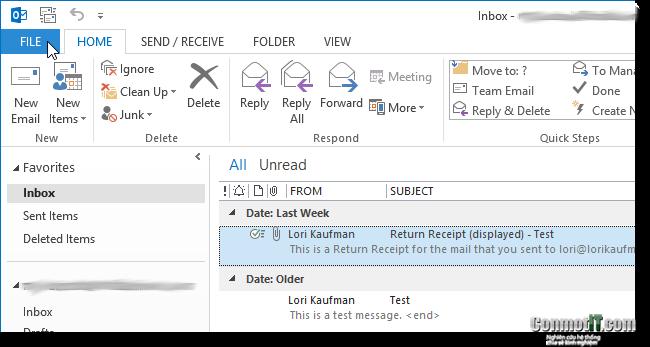 Sau đó bạn mở outlook lên và vào tab file nhé.