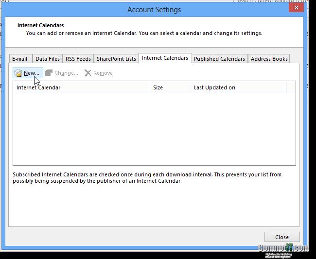 Trên tab internet calendars thì bạn click vào nút new nhá.