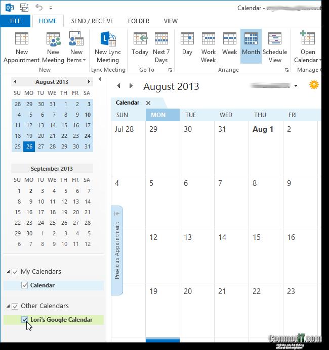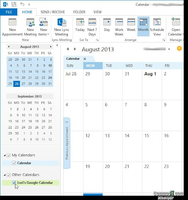 Cách xem google calendar trong outlook 2013