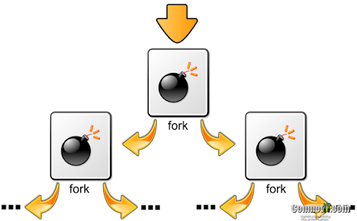Lệnh này được định nghĩa là một chức năng của shell tạo ra các bản sao mới của chính nó.Nó sẽ được nhân bản nó lên với cấp số nhân và bản sao của nó cũng tự nhân bản lên với cấp độ tương tự. Nó sẽ khiến cho CPU của bạn bi chiếm dụng hoàn toàn. Đây có thể coi là một cuộc tấn công từ chối dịch vụ rất nguy hiểm.